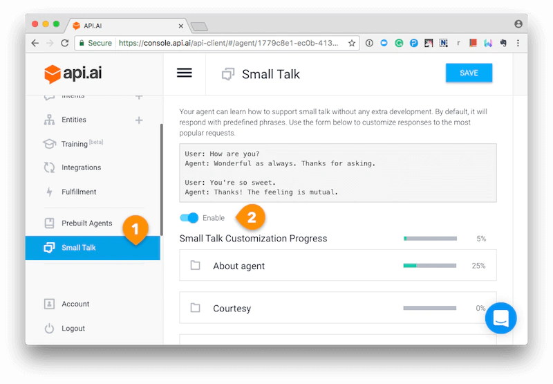 پس از ساخت حساب بر روی گزینه “Small Talk” برید و اون دکمه تغییر وضعیت یا toggle اش رو روشن کنید . عکس زیر بیشتر توضیح میده.