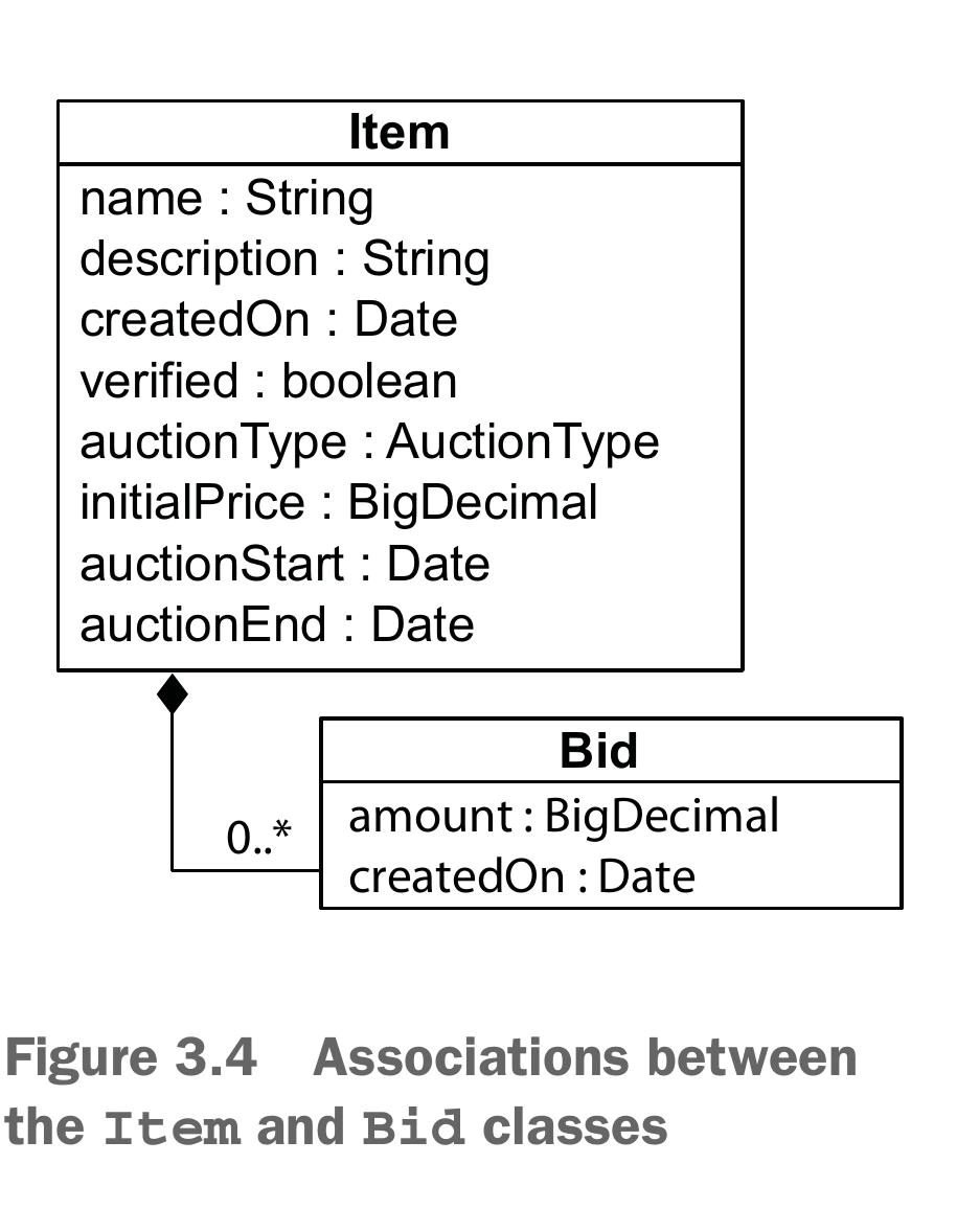 در مورد مثال بالایی البته مفهوم bid بدون وجود آیتم معنی ندارد . اول باید آیتمی به وجود بیاید تا برای آن bidی ثبت بشود . در چنین سناریو هایی باید موقع نوشتن متدهایی که لینک بین این دو را مدیریت میکند این موضوع را مد نظر قرار دهیم مثلاً وقتی دستور ثبت bid صادر میشود باید اول سراغ موجود آیتم برویم ببینم هست و اگر هس براساس آن و از طریق آن آبجکت عمل افزودن bid جدید به لیستش را انجام دهیم . با کد این موارد را نشان میدهیم .